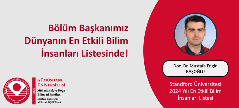 Stanford Üniversitesi tarafından hazırlanan ve her yıl yayımlanan “Dünyanın En Etkili Bilim İnsanları” listesinde, bölümümüz öğretim üyesi ve Bölüm Başkanımız Doç. Dr. Mustafa Engin BAŞOĞLU yer almıştır.